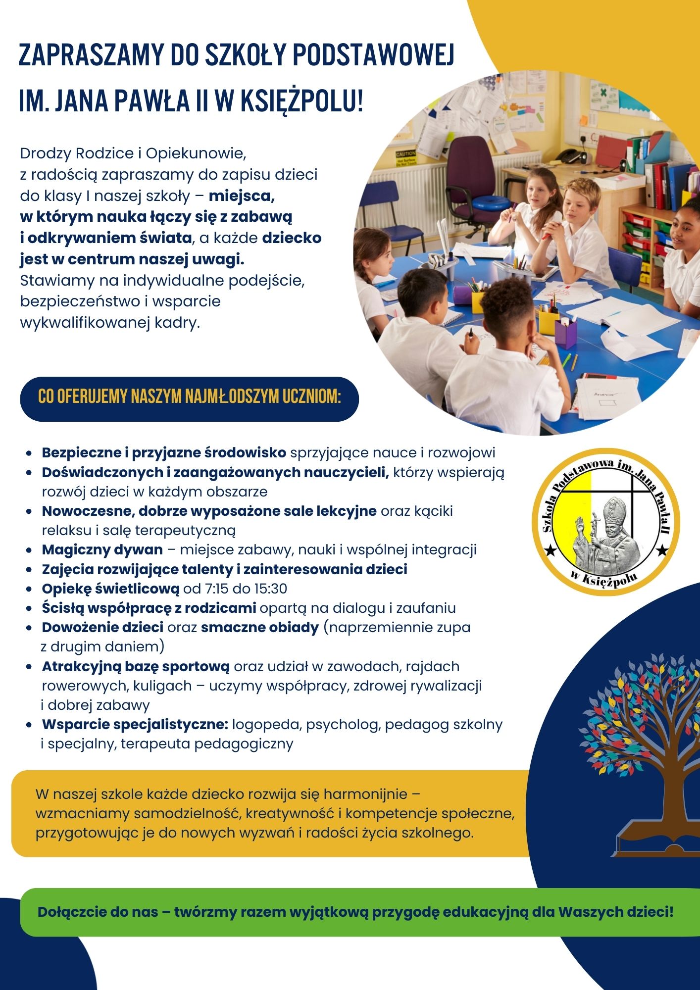 Oferta edukacyjna: Szkoła Podstawowa im. Jana Pawła II w Księżpolu